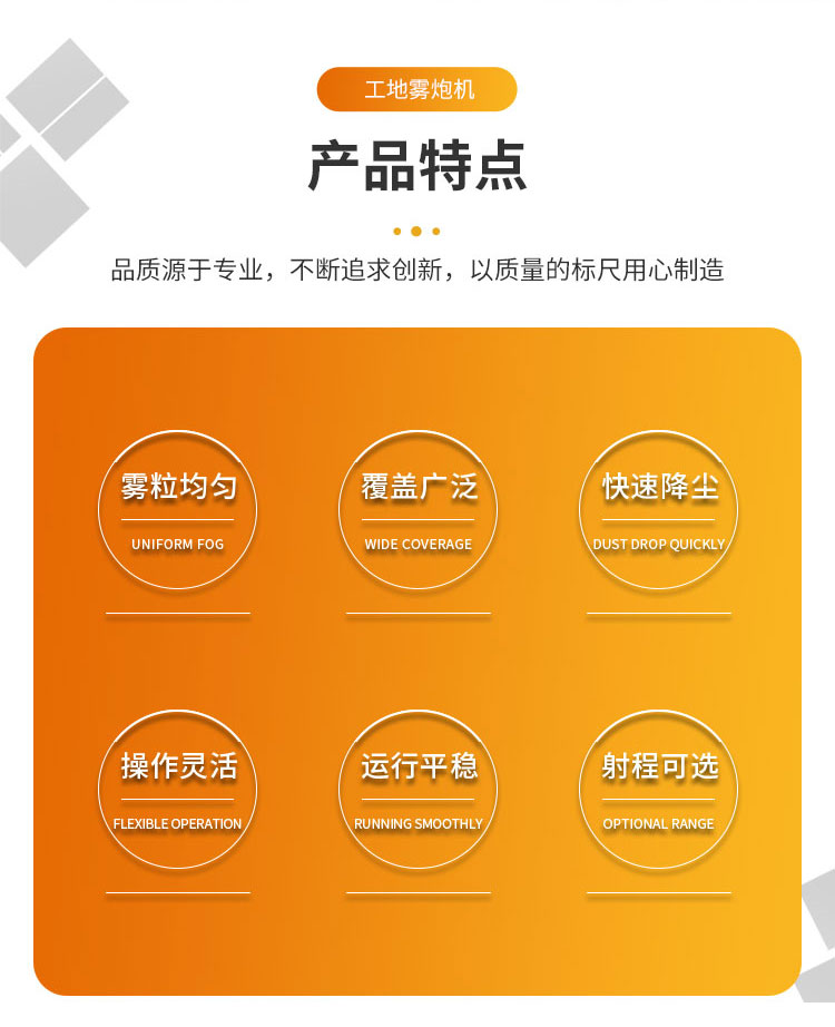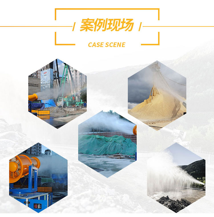 主要用途:適用于城市拆遷工地、冶金鋼鐵企業(yè)、采礦區(qū)域、煤化工企業(yè)、水泥廠、火力發(fā)電廠、建筑工地、物料和礦產(chǎn)品露天堆放廠、混凝土處理廠、垃圾堆放場(chǎng)、垃圾焚燒廠、沙廠、干式物料倉(cāng)庫(kù)、露天爆破、重度粉塵區(qū)域。