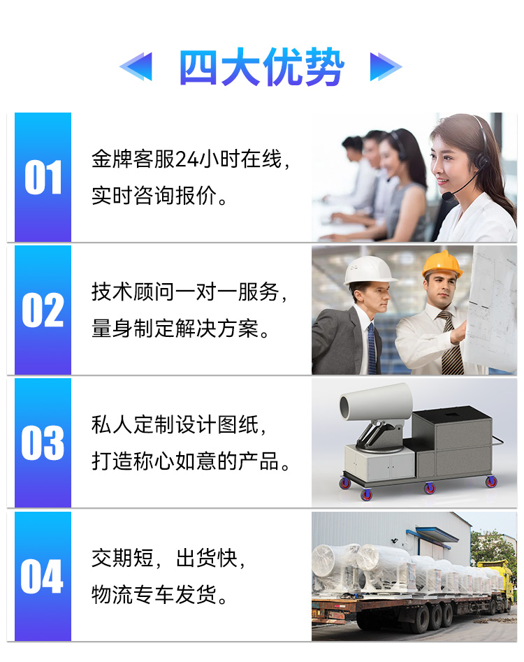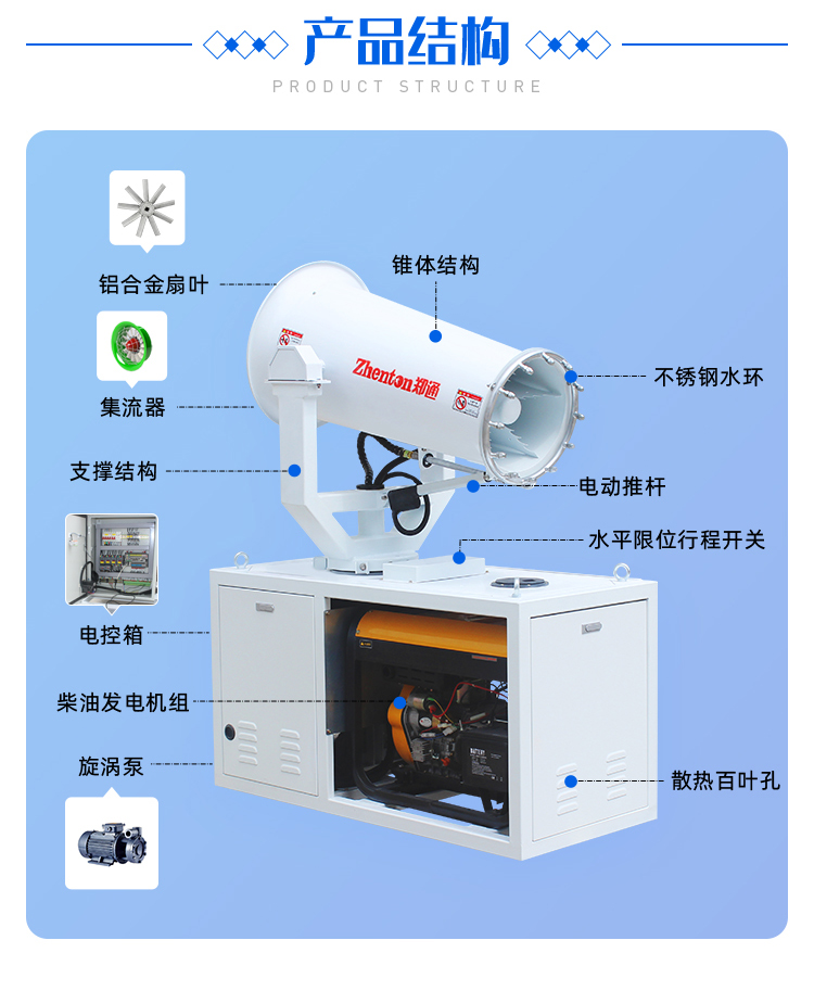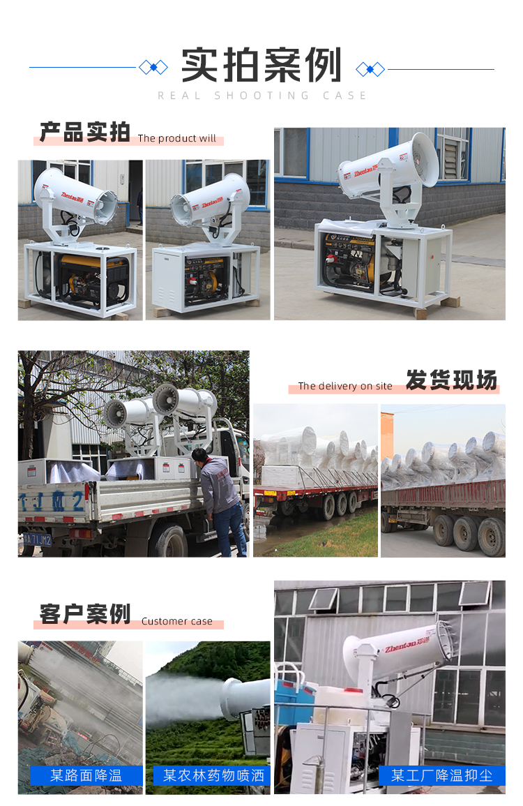 灑水車配套霧炮機,發電機發電、智能全自動、遙控、性能穩定、堅固耐用、故障率低。