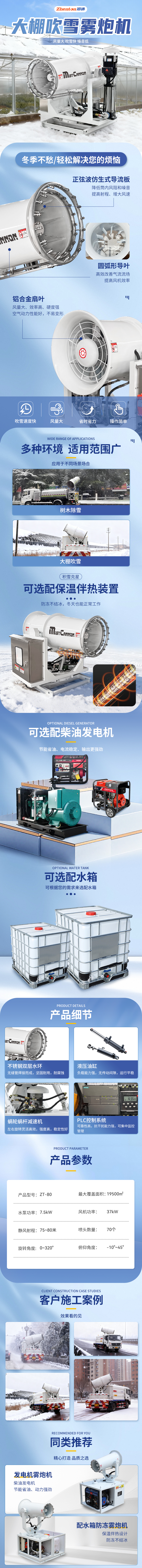 主要用途:森林樹木除雪、大棚吹雪以及煤場、料場、礦山、砂石廠、工地施工等環境的降塵工作。